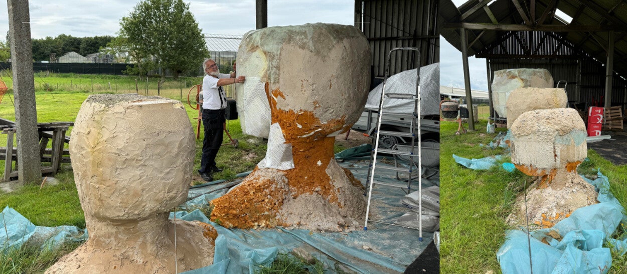 We maken een wandeling in zijn tuin, waar Marc een permanente tentoonstelling heeft en waar creaties staan te wachten op voltooiing. Bij elk kunstwerk kan Marc een verhaal vertellen.