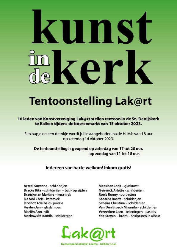 Naar jaarlijkse gewoonte stellen leden van Lak@rt tentoon in de kerk. Het Nieuwsblad bracht verslag uit.