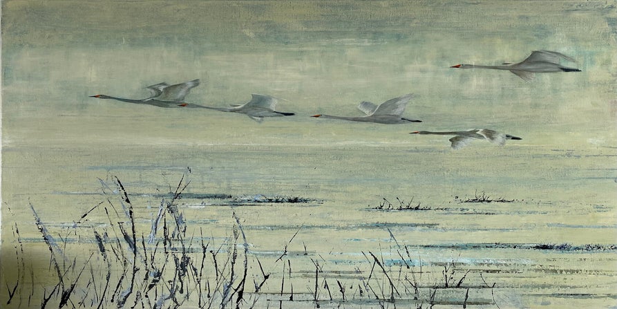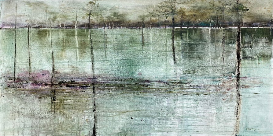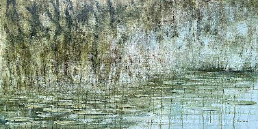 Ik heb mij jarenlang toegelegd op aquarelschilderen: het vloeien van de transparante kleuren, nat in nat, bleef mij boeien. Tegelijk wou ik graag op doek schilderen. De laatste jaren ‘aquarelleer’ ik op linnen. Ik gebruik daarvoor olieverf die kan aangelengd worden met water. Ook het gebruik van terpentijn én water als oplosmiddelen geeft verrassende resultaten.